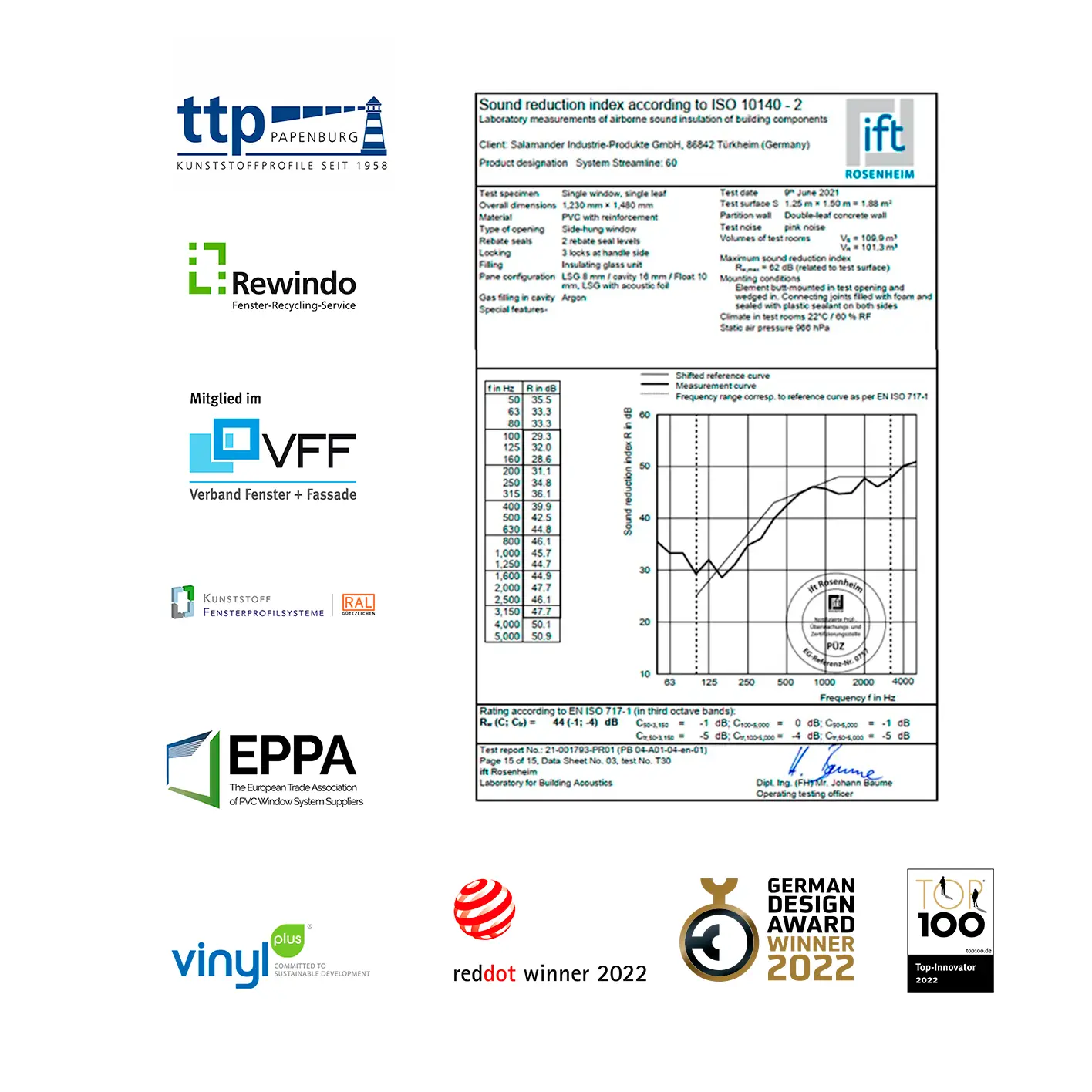 Todos os perfis de PVC do nosso fornecedor Salamander estão em conformidade com as rígidas normas europeias e internacionais.